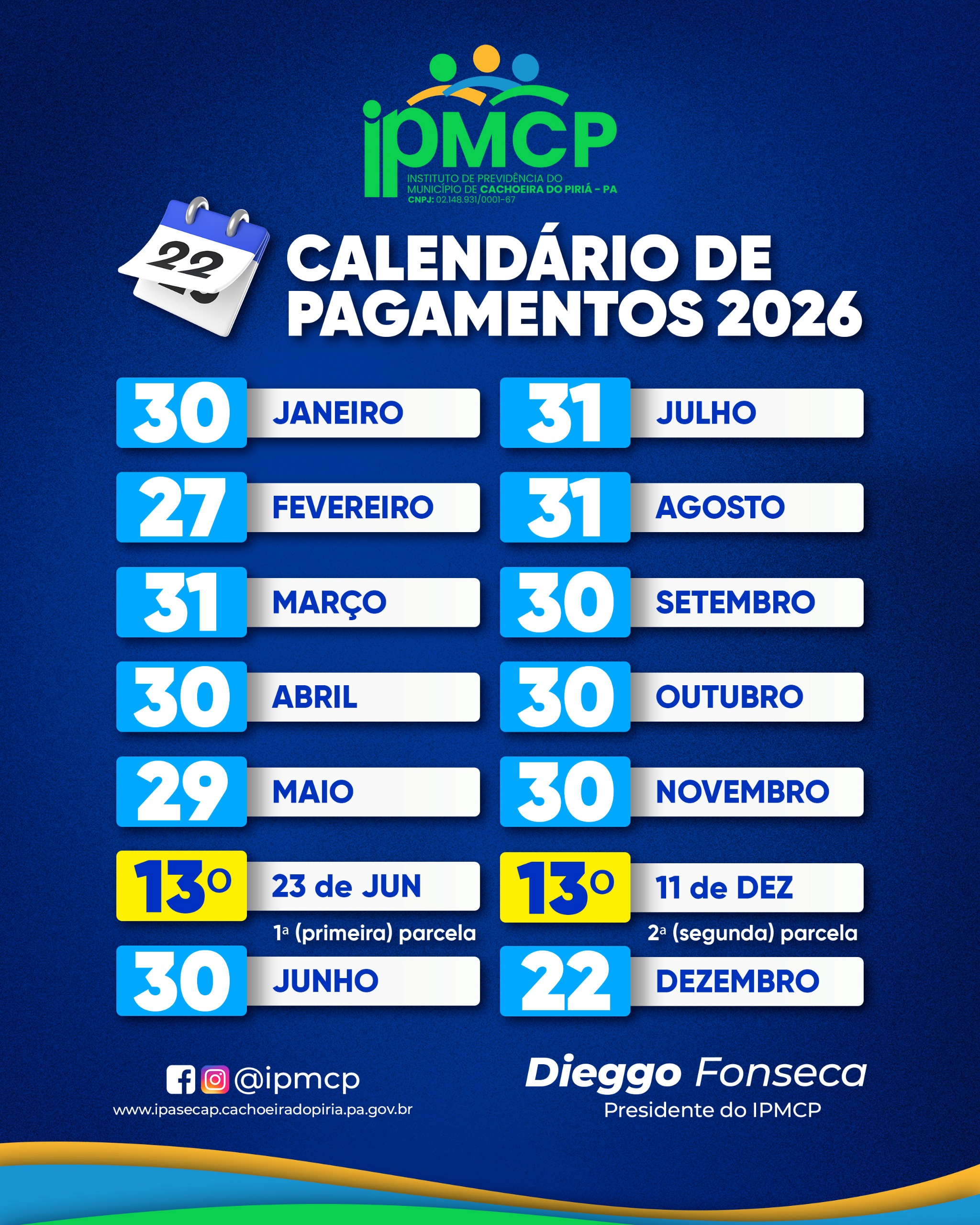 O Instituto de Previdência do Município de Cachoeira do Piriá publicou a Portaria nº 003/26, de 12 de janeiro de…